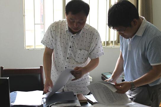 檢查小組查看聚仁·萬象都會(huì)項(xiàng)目資料整理情況
