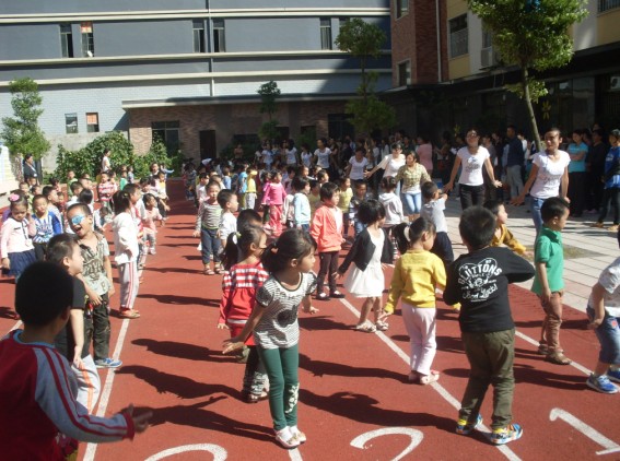 9月29日,在迪斯尼幼兒園、園外園幼稚園的操場上,響起了早操律動(dòng)音樂,可愛的寶寶們?cè)诓賵錾细S著老師們的步伐,蹦蹦跳跳起來。在老師的帶動(dòng)下,在場的家長們也紛紛加入進(jìn)來,和寶寶們一起又唱又跳。迪斯尼幼兒園的老師們表演了民族舞《天藍(lán)藍(lán)》,還進(jìn)行了古箏、個(gè)人舞的才藝表演,展示了幼兒園老師們朝氣蓬勃的精神面貌。園外園幼稚園的老師們也不甘示弱,在現(xiàn)場以特有的方式展現(xiàn)了幼兒園的承諾、愿景、文化。