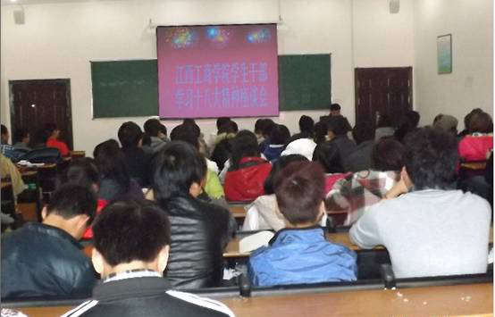 11月19日下午,在學(xué)院多媒體會議室召開了“學(xué)習(xí)黨的十八大精神學(xué)生干部座談會”。首先院團委王眾老師對黨的十八大精神進行了宣講,并就學(xué)生會干部深入學(xué)習(xí)貫徹十八大精神作出了部署,對學(xué)習(xí)中需要把握的重點問題提出了明確要求。他指出,要以學(xué)生干部為切入點從而帶動全院學(xué)生深入學(xué)習(xí)落實黨的十八大精神。應(yīng)做好以下幾點工作: