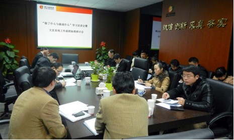 根據(jù)會議安排,集團(tuán)品牌文化部借助此次集團(tuán)各部門、單位文宣工作人員齊聚一堂的機(jī)會,針對集團(tuán)文宣系統(tǒng)相關(guān)工作流程和工作標(biāo)準(zhǔn)與參會人員進(jìn)行探討和學(xué)習(xí)。此次會上解讀的文宣系統(tǒng)工作流程及標(biāo)準(zhǔn)主要是涉及各單位的相關(guān)工作流程,如信息采集與編發(fā)流程,包括集團(tuán)報(bào)編發(fā)流程、要情通報(bào)編發(fā)流程、網(wǎng)站信息上傳流程;企業(yè)文化建設(shè)工作管理流程,包括企業(yè)文化管理總流程、準(zhǔn)備階段流程、診斷階段流程、規(guī)劃階段流程、實(shí)施階段流程以及品牌建設(shè)管理流程、文宣工作人員考核流程,文宣工作年終評優(yōu)評先流程等文宣系統(tǒng)工作的六個(gè)大項(xiàng)、二十余各小項(xiàng)流程和相關(guān)工作標(biāo)準(zhǔn),通過制定一系列的文宣系統(tǒng)工作流程及標(biāo)準(zhǔn),進(jìn)一步規(guī)范集團(tuán)文宣系統(tǒng)相關(guān)工作,引導(dǎo)各單位文宣工作人員熟悉掌握并嚴(yán)格執(zhí)行相關(guān)工作流程和標(biāo)準(zhǔn),從而提高工作效率。