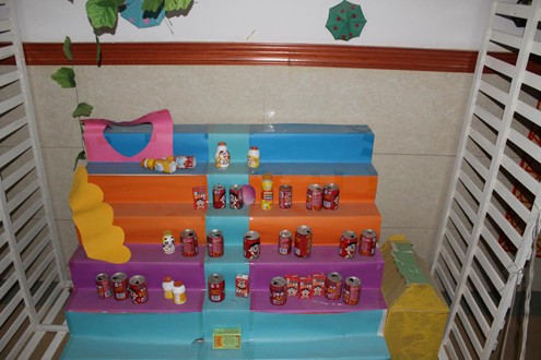 評比活動中,老師們積極主動想辦法、動腦筋,利用空易拉罐、塑料瓶、廢硬殼紙等廢棄物品,做出各種各樣的有趣的教具、小盆景等,還把各班的墻面、地面等進(jìn)行重新布置。老師們根據(jù)本班活動區(qū)和主題墻創(chuàng)設(shè)新環(huán)境,活動區(qū)有建構(gòu)、藝術(shù)、科學(xué)等區(qū)域,主要作為孩子自由活動的空間;主題墻根據(jù)教學(xué)計劃創(chuàng)設(shè),用于輔助教學(xué)。她們剪的剪、畫的畫、配合非常默契,從環(huán)境布局、材料添置,到幼兒學(xué)、玩教具內(nèi)容的豐富,事無巨細(xì),每一樁、每一件都融入了集體的智慧。